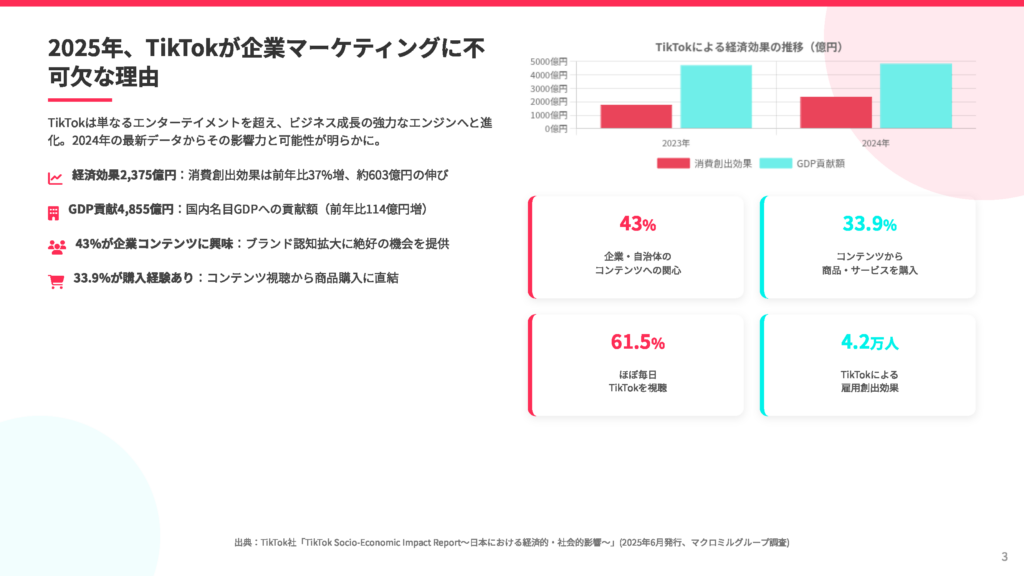 2025年の最新データをもとに、TikTokが企業マーケティングでどのように成果を出しているかを分析。