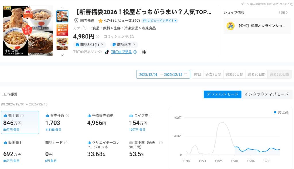 牛丼チェーン「松屋」の福袋です。 EC、特にTikTokのような新興プラットフォームでは「本当に届くのか?」「味は大丈夫か?」という不信感が購入のハードルになります。